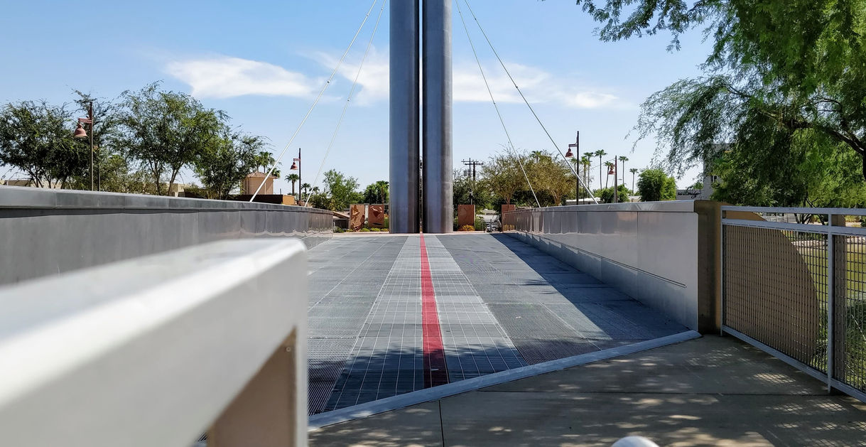 Overall, we found the space to have a lot of different but surprisingly cohesive aesthetics within it. The layout had a clear directional flow looping from one bridge to another. Additionally, it was clear that the space was heavily inspired by nature and surrounding colors. The space's primarily colors were hues of red and green, with blue coming from the sky above and the steel of the bridge.