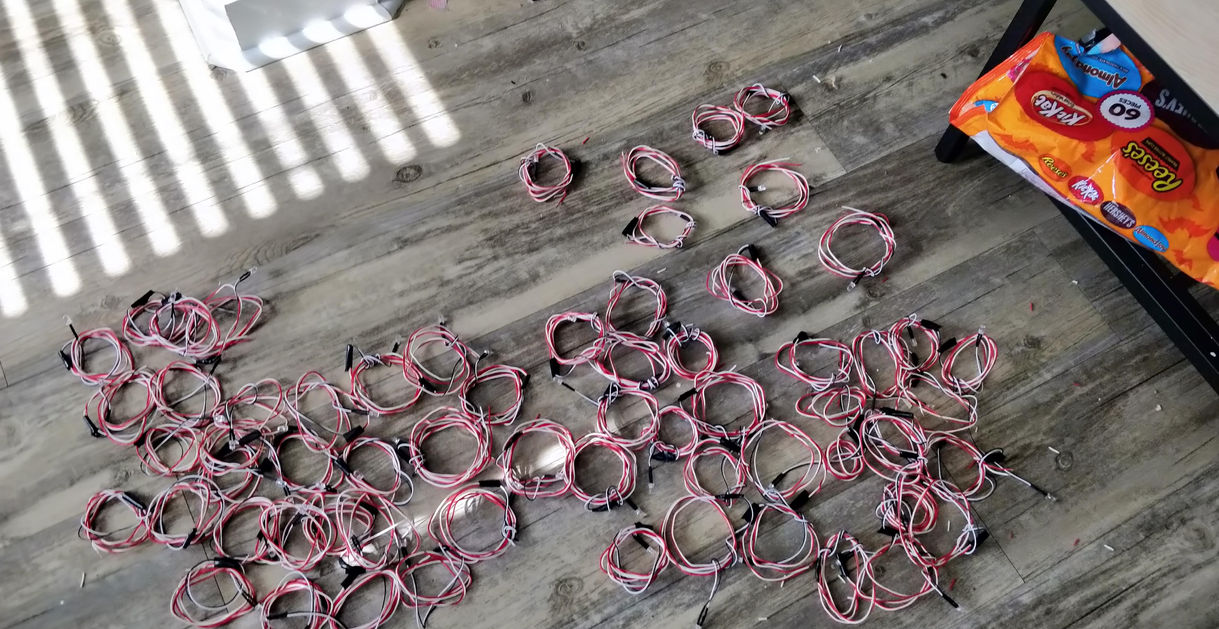 One of the other most difficult factors in this design was the sheer quantity and repetitive processes for creating certain pieces in the artifact. With a total of 320 petals, 64 hand soldered LEDs, 64 hand taped PVC with 64 rounded bottoms for each pipe, 64 rings for each petal to attach to the PVC, and 64 rings to push the petals up, many hours were dedicated to tiny details.